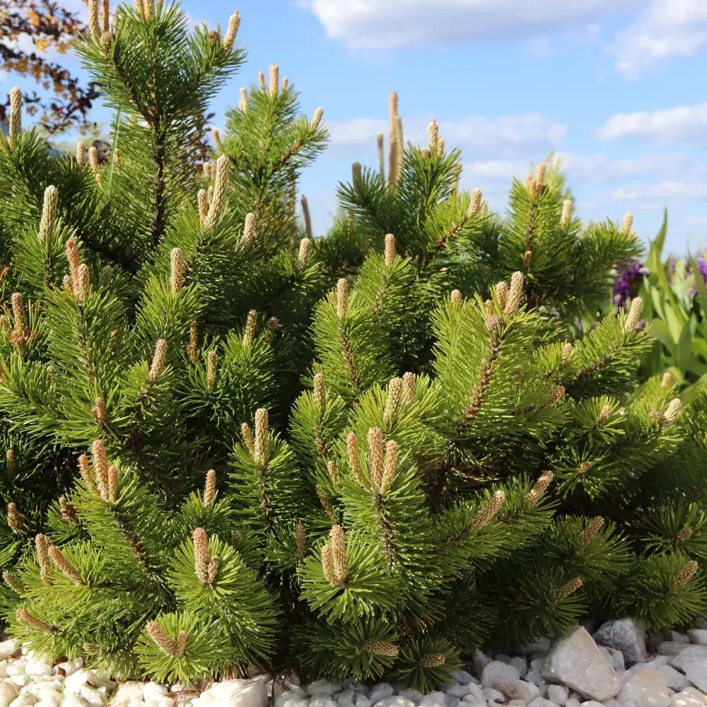 Pairing Dwarf Mugo Pine with flowering shrubs and ornamental grasses can enhance your garden’s aesthetic appeal. Its dark green needles serve as a stunning backdrop for vibrant flowers and soft grasses, creating a dynamic and varied landscape composition. This evergreen works well in both formal and informal settings, adding elegance or rustic charm as needed.