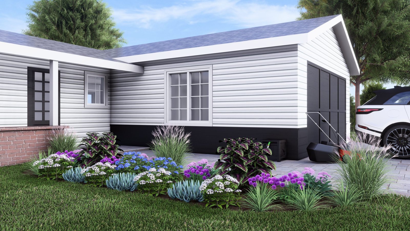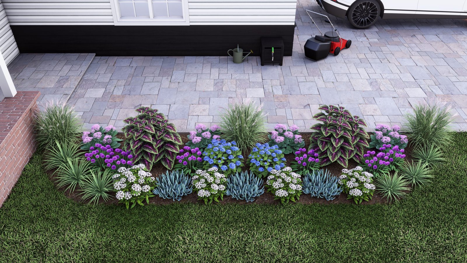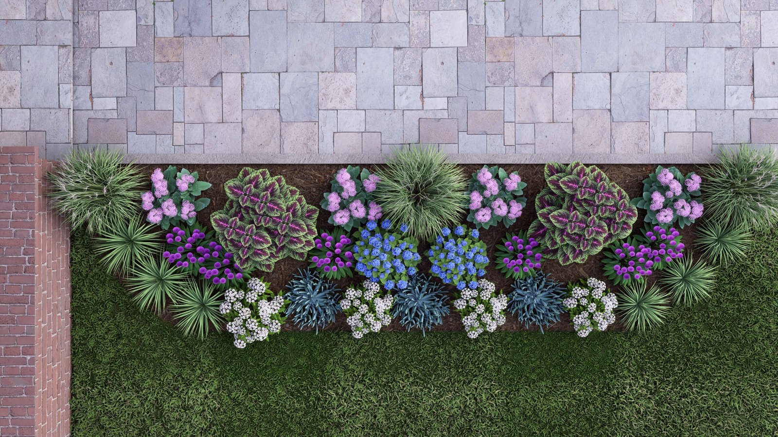 Our 3D rendering provide the best representation of the design; most plants are shown in bloom. Actual bloom times may be staggered for year-round intereset.